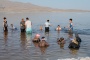 Le donne si immergono vestite come impone la religione, ma le ragazze, con un moto di