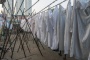 Scendiamo alla stazione della metro Mahalakshmi - nell’omonimo quartiere - di Mumbai in India, e ad attenderci c’è un caldo da incubo: direzione Dhobi Ghat. L’afa mista all’inquinamento sono soffocanti quanto lo stesso sovrappopolamento. “Attraversate il ponte” ci dice un anziano signore, magrissimo e sdentato, capelli argentati e torso nudo, mentre trascina il suo pesante carico su un carretto più consumato del suo conduttore. Ci incamminiamo a fatica, sopraffatti dall’umidità, e dall’alto ci appare uno spettacolo apocalittico: quella che viene definita la più grande e antica lavanderia umana a cielo aperto del mondo. E’ stata creata alla fine del milleottocento per soddisfare le esigenze dei colonizzatori inglesi, e da allora non ha mai smesso di funzionare. Una città nella città dove lavorano incessantemente migliaia di persone, e alla quale fanno da sfondo i grattacieli dei quartieri eleganti. Colpiscono alla vista le lunghe file di panni stesi ad asciugare sui tetti, gli indumenti, raggruppati per tipologia, che volteggiano e le candide lenzuola, aggrappate al corde sorrette da pali, che si gonfiano come le vele di una grande nave. Curiosamente, non vengono usate mollette per stendere, ma il tutto viene annodato alle corde rispettando una vecchia tradizione.
