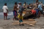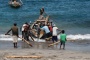 Sbarcato l’intero equipaggio le barche devono essere deposte nuovamente sotto le tettoie di paglia, ogni giorno questa pesante manovra è parte del lavoro, e chiunque è presente sulla spiaggia, compresi i bambini, aiuta a spingere le pesanti imbarcazioni sui pali adagiati sulla sabbia al fine di farle scivolare un po’ più agevolmente.