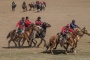 Dopo una prima sessione di foto, non soddisfatto degli scatti in lontananza decido, non senza rischi, di muovermi dietro uno dei cumuli di terra dove viene gettata la carcassa della capra. Voglio inquadrare bene il volto dei giocatori, specialmente durante lo sforzo di arrivare alla meta con il frustino tra i denti, e il risultato è indubbiamente fantastico.