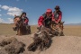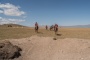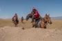 Aspettiamo su una collinetta i ragazzi che, trascorsa una breve attesa, appaiono come un esercito di cavalieri nomadi provenienti dal “nulla” delle steppe.