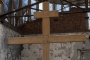 Decidiamo di addentrarci nella palestra. Una struttura metallica avvolge come una tenda dorata i ruderi dissacrati, quasi a proteggerne l’integrità. Qui il silenzio diventa assordante. Era un luogo di educazione, oggi è solo un cumulo di macerie abitate da dolori. Al centro campeggia una croce ortodossa in legno; alla base qualcuno ha deposto un mazzo di rose rosse. Il tetto è stato ricostruito dopo che l’incendio, a seguito delle deflagrazioni, lo aveva distrutto. Il pavimento in parquet è ancora in parte dissestato.